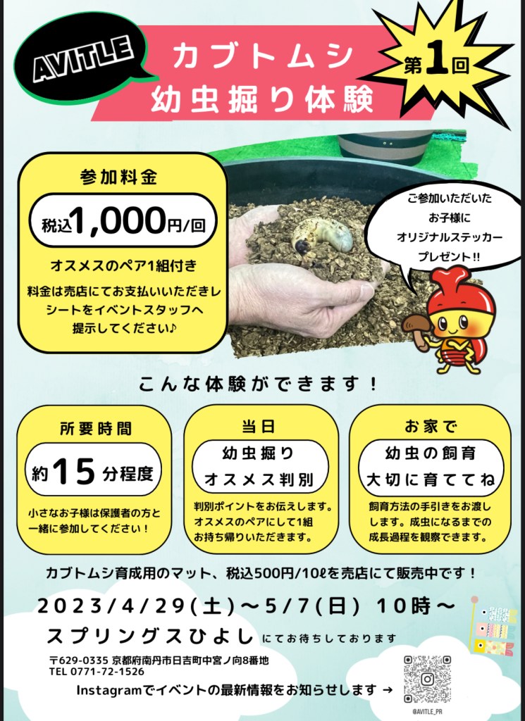 【GW カブトムシ幼虫堀り体験】4/29(土)~5/7(日)