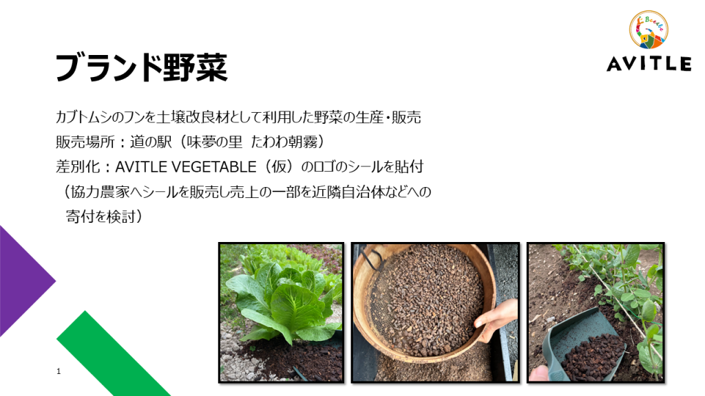 廃菌床で何かできないか考えていたところ、屋外に積み重ねていた廃菌床にカブトムシの幼虫が育っているのを見つけました。菌床はカブトムシにとっては住みやすい環境になっていることがわかり、廃菌床を活用してカブトムシ育成を考えました。
