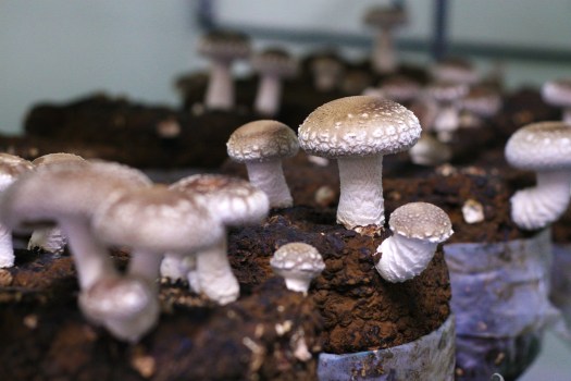 5. すると、菌床の表面からキノコの芽が出てきます。